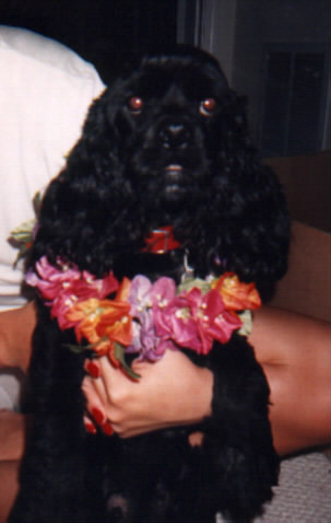 Tamann and Squeeky on a beach in Hawaii in the evening